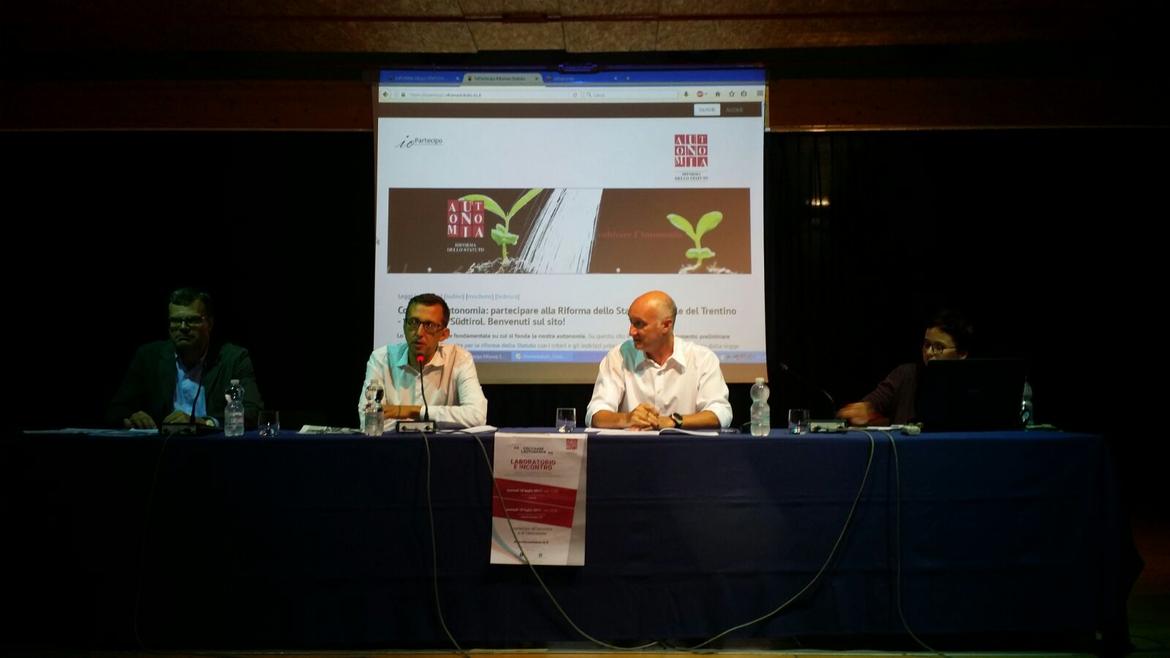 Lorenzo Baratter, componente della Consulta, ha illustrato i lavori in preparazione del documento preliminare e le fasi che ne caratterizzano il percorso. “Il lavoro fatto dalla Consulta è coraggioso e opera in autonomia rispetto alle dinamiche della politica. Sul tema dei comuni, per esempio, il dibattito all’interno della Consulta ha messo in luce la necessità di riconoscere maggiore protagonismo agli enti locali. Su questo, come su altri temi proposti, è opportuno che ci sia un’ulteriore riflessione da parte degli amministratori locali, in modo che la Consulta possa aggiungere elementi, anche innovativi, nel documento conclusivo. Chiunque può, attraverso i canali messi a disposizione per la partecipazione, fare le proprie proposte e considerazioni che saranno valutate dalla Consulta a partire da ottobre”. Sulla Regione Baratter ha osservato che ci sono punti di vista diversi. “C’è chi ritiene che la Regione debba superare il ruolo ammnistrativo e burocratica attuale, e debba avere un ruolo più politico, capace di creare sinergie tra Trento e Bolzano con logiche nuove rispetto alle attuali. L’idea è di passare da un modello basato sulle competenze a un modello di co-gestione di politiche, su temi cruciali come i trasporti, l’ambiente, la cultura e la scuola. Personalmente ritengo che il successo del modello autonomistico sia legato alla collaborazione e sinergia che Trento e Bolzano riusciranno ad esprimere, creando quella “regione delle persone” che di fatto non esiste poiché le popolazioni dei due territori hanno vita sociale, culturale e professionale separate. A Bolzano, il percorso della Convenzione ha fatto sì che una minoranza - presidiando i contesti di partecipazione e discussione, in modo legittimo – abbia fatto emergere con forza il tema dell’autodeterminazione e l’idea di un superamento della Regione, mettendo in discussione anche l’unicità dello Statuto regionale. Questa visione, a mio avviso, è pericolosa perché va a smantellare l’ente regionale che ha titolarità difronte allo Stato. C’è poi chi ritiene che le competenze attuali della Regione non vadano toccate, ma è evidente che la Regione com’è oggi fatica ad avere una prospettiva politica”.
